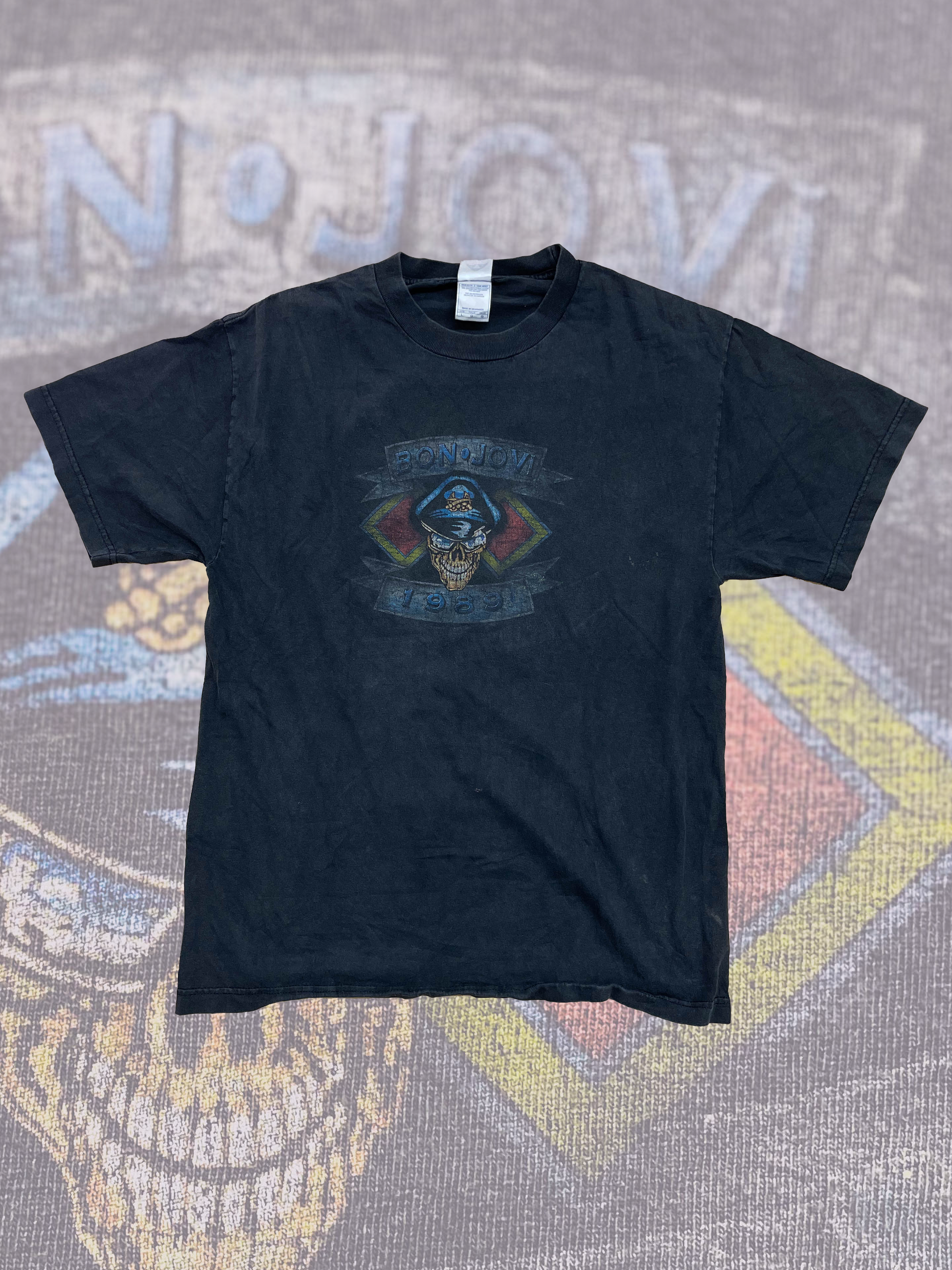 80s Bon Jovi original concert tee from The Brotherhood Tour which lasted from 1988 into 1990. Front graphic features cool skull graphic. This is a true vintage shirt, not a modern reproduction. Sizes vary so please use measurements for best idea on fit.